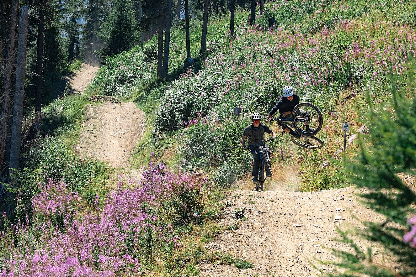 Der Dirt District befindet sich nämlich direkt dahinter und eine der längsten Lines führt am Selda Chalet vorbei. Die Gahe Line lässt sich ideal mit anderen Lines kombinieren und ist Teil der 16 km langen Long Line Giggijoch – ein echter Konditionstest für alle Bike Republicans.